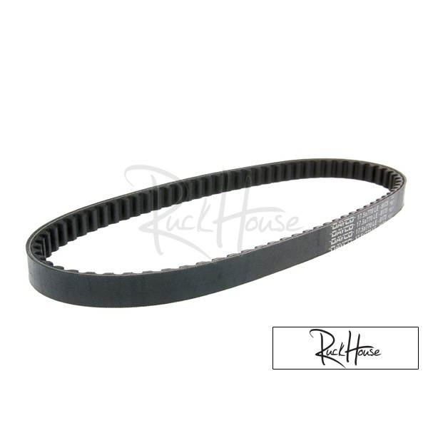 Aramid reinforced belt from well respected Italian company Dayco, sister company to Pirelli. The woven aramid fibre makes this belt much more durable than standard V-belts. Dayco belts meet the highest standard and are preferably used in Maxi scooters or motor scooters with higher capacity and power however can also be used as a replacement belt and are therefore a good choice for those who demand a little more than what the standard belt offers. Dimensions: 770*17,5. This belt is suitable for scooters with the 100cc Minarelli 2 stroke engine.