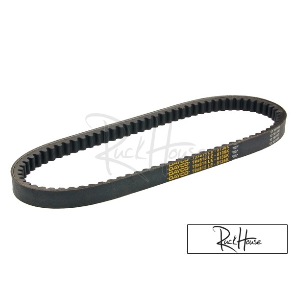 Aramid reinforced belt from well respected Italian company Dayco, sister company to Pirelli. The woven aramid fibre makes this belt much more durable than standard V-belts. Dayco belts meet the highest standard and are preferably used in Maxi scooters or motor scooters with higher capacity and power however can also be used as a replacement belt and are therefore a good choice for those who demand a little more than what the standard belt offers. Dimensions: 815*19