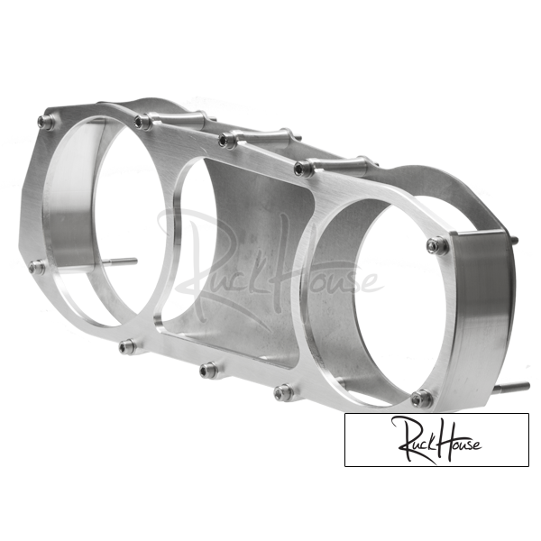 Ultimate GY6 transmission CVT Cover for those big power motors! After the original CVT Cover, There is the NEW Ultimate CVT cover. This CVT Cover still includes a .13" THICK Stainless Steel 'backing plate' to help prevent case cracking, along with covering the ugly insides of the stock swingarm, a billet machined decorative front plate, 6 billet aluminum machined standoffs that hold the decorative plate out from the swingarm for that custom look and now 2 front and rear SOLID 6061 billet end pieces for ultimate straight and no getting your pant legs caught when doing a burn out. Protects Drive face and belt from road debris. These are delivered raw, they are ready to be painted, powdercoated or polished.