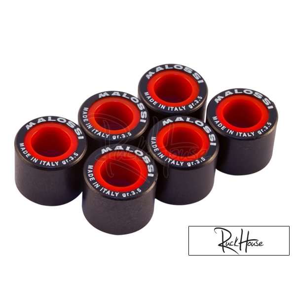 The HAT weights are very durable and self lubricating. Available in a range of sizes such as 16x13 (Polini, Malossi, Peugeot, Kymco, Honda, Piaggio pre 98), 17x12 (Hebo), 15x12 (TopPerformances, Minarelli standard), 17x13.5 (Piaggio Zip/Sfera MK1), 19x15.5 (Piaggio post 98)