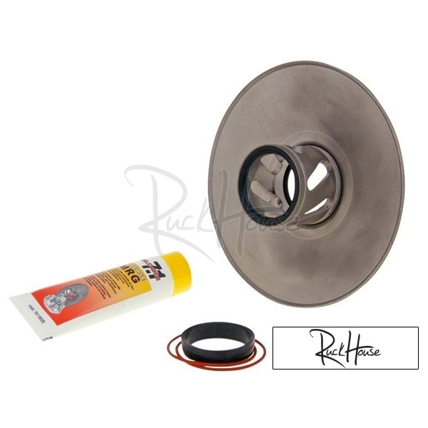 High Tech convertor plate in extremely resistant nitride steel from Malossi. Features straight guide grooves for better acceleration. 2x different gradients of guide groove allows for better fine tuning, drive and acceleration. Core diameter - 34mm. Plate diameter - 117mm.