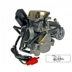 Complete replacement 24mm carburettor (membrane type) supplied with electric auto choke. Ready to fit and suitable for 125/150cc Chinese-built engines and 125cc air-cooled Kymco models. This is a Chinese-built carb and matches the quality of the original item. Uses M5 main jets.