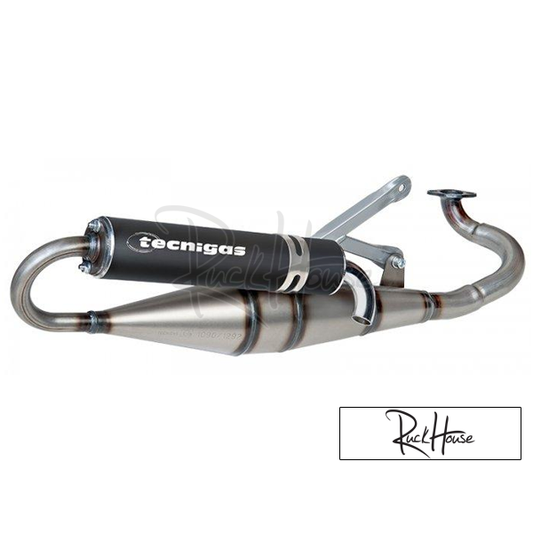 The Tecnigas Next-R is a well-proven and all-round exhaust for 50cc or 70cc sport cylinders. This exhaust has a good performance yield at relatively low range and sound levels. In terms of performance, the Next-R system is an improvement over the Leovince TT and, with the correct tuning, can reach over 9hp
