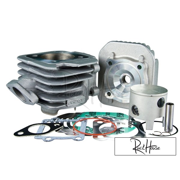 En partenariat avec les sociétés KRM et Athena, Most propose ici le premier kit de cylindre! Un produit de haute qualité avec des performances exceptionnelles à bas, moyen et haut régime. Ce kit de cylindre 70cc convient au moteur vertical Minarelli. Le cylindre est en aluminium avec un alésage de 47,6 mm, 5 orifices de transfert et un orifice d’échappement ovale. La conception de l'entrée augmente la masse entrant dans le cylindre, pour garantir un bon mélange de remplissage. L'option piston plat a été choisie pour assurer la compression et un couple élevé. Nous recommandons deux types de configuration: échappement Most Wicked 70cc, 19 ou 21 carb, vilebrequin sport, variateur, embrayage ... ou pour plus de course: Exhuast Most Wicked 70cc, carb de 24 à 28mm, prise de grande valve, vilebrequin Racing, rotor intérieur allumage, variateur Overange et embrayage de course.