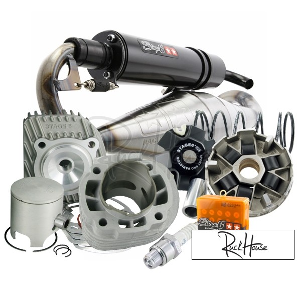 Pack moteur complet pour Yamaha Bws 2002-2011. Le kit comprend le kit de cylindre Stage6 Sport Pro MKII 70cc 10mm, Variateur stage6 sport pro, Réplique Exhaust Stage6 pro, Ensemble de jets principal Stage6 80-102 6mm, Bougie d'allumage BR9HS, Stage6 16x13 rouleau 5g et ressort à couple moyen Stage6.