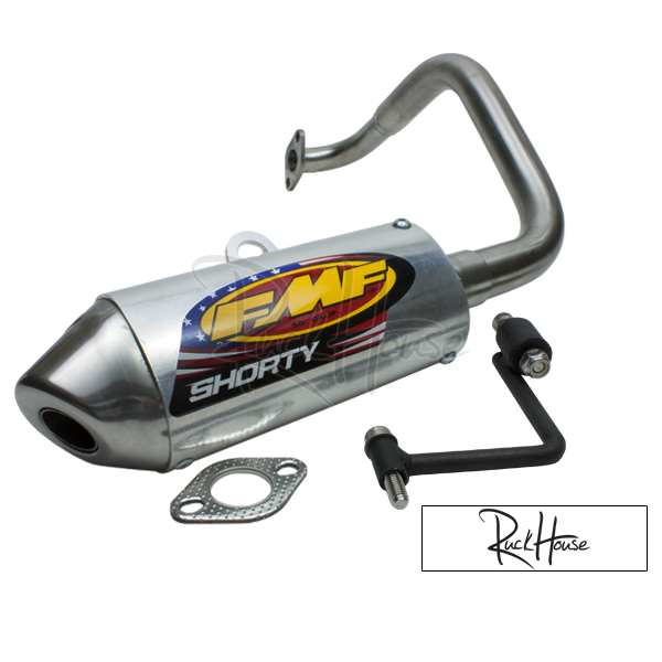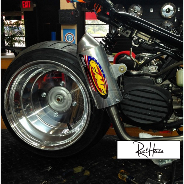 Échappement FMF personnalisé avec collecteur en acier inoxydable. Livré avec tout le matériel de montage, conçu directement pour le moteur OEM Honda Ruckus avec roue Fatty 7-8 ''.