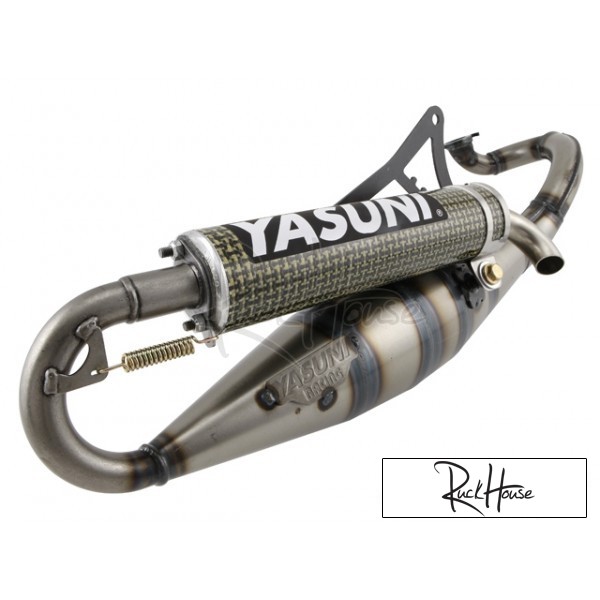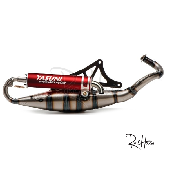 Le grand frère du Yasuni Z: grâce à une chambre d’expansion plus grande et à un diamètre de tuyau de descente plus large, le Yasuni R est le complément idéal des cylindres de sport et de course 70cc tels que MHR Replica, Corsa, etc. Les caractéristiques de l’échappement sont similaires à ForRace ou Nardo. Yasuni a trouvé un moyen astucieux de fixer le silencieux arrière (avec bagues d'étanchéité et ressort). Le silencieux a un look élégant en aluminium.