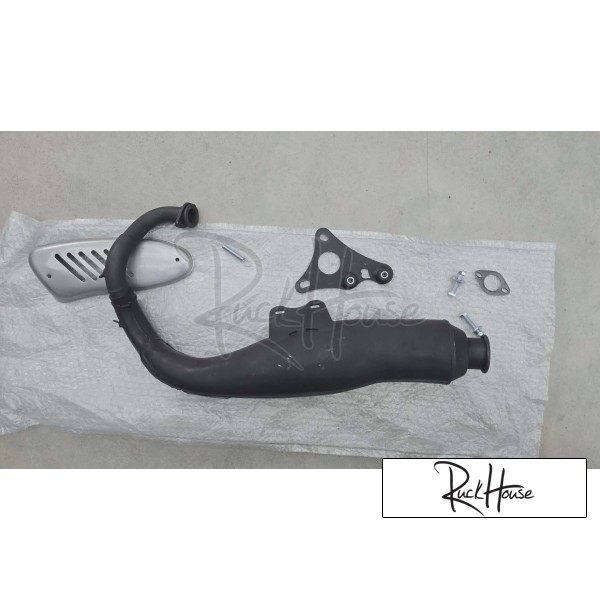 Missing the 2 heat shield bolt, the washer for the installation, small damage and this exhaust is unrestricted