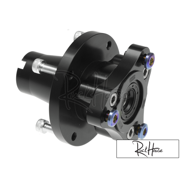 Professional Crafted front Billet Hub for 4x90 pattern front wheels with Brake Adapter flange, 3 NCY Titanium finish rotor bolt and Stainless bolts to attach Brake disc adapter plate.