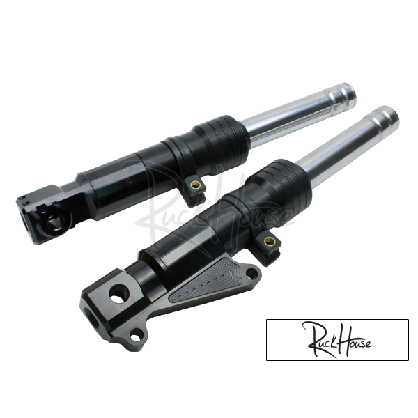 Nous proposons ici des jambes de fourche basses pour Honda Ruckus. Attention! Vous ne pouvez utiliser cette fourche qu’avec la conversion du frein à disque avant. La fourche et la roue oem Ruckus sont conçues pour le frein à tambour. L'accord parfait avec le moyeu avant TRS, la roue avant TRS, le frein à disque Adelin 220 mm, le support d'étrier RRGS et enfin l'étrier Adelin à 4 pistons. Longueur de la fourche: 300mm / Diamètre de l'arbre: 27mm / Diamètre de l'essieu: 12mm