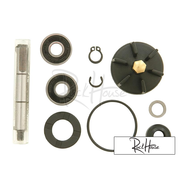 Kit de réparation de pompe à eau pour différents moteurs Piaggio LC. Toutes les pièces illustrées sont incluses.