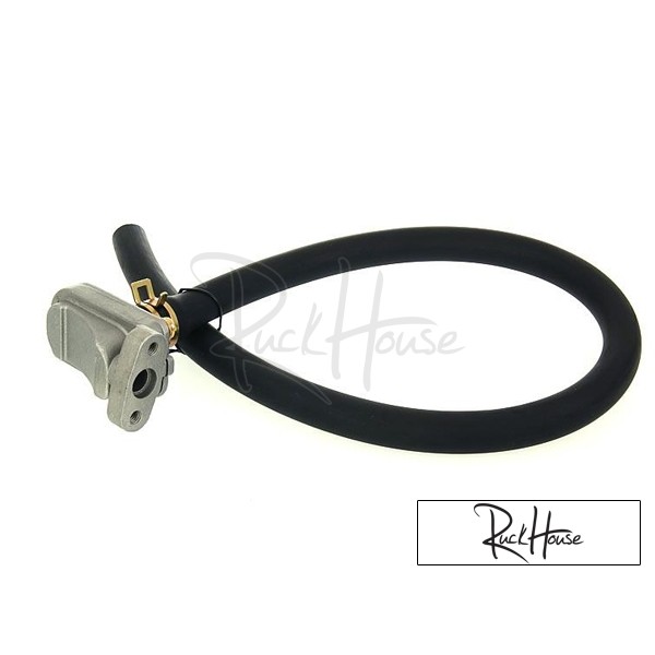 SLS avec tuyau pour systèmes d'échappement GY6 50cc avec SLS. Cette pièce est souvent nécessaire si les boulons de fixation sont rouillés ou bloqués, ou si le moteur tourne mal en raison d’une soupape défectueuse. Valve envoyée avec tuyau. Veuillez commander le joint séparément, car il ne figure pas dans la livraison.