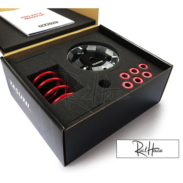 En marge de ses nouveaux développements de produits pour moteurs 4 temps, YASUNI n'oublie pas le 2 temps. YASUNI entre dans une nouvelle phase du marché de la performance pour scooter, à commencer par le lancement d'une toute nouvelle gamme de variateur de scooter 2 temps. Répondant au même esprit et aux valeurs qui ont construit sa réputation: avantages maximaux, fiabilité et design ... Avec le nouveau variateur YASUNI, vous laisserez des traces! Comprend un ressort de couple moyen Yasuni et 3 jeux de rouleaux de 19x15,5mm (3g, 4g et 5,5g).